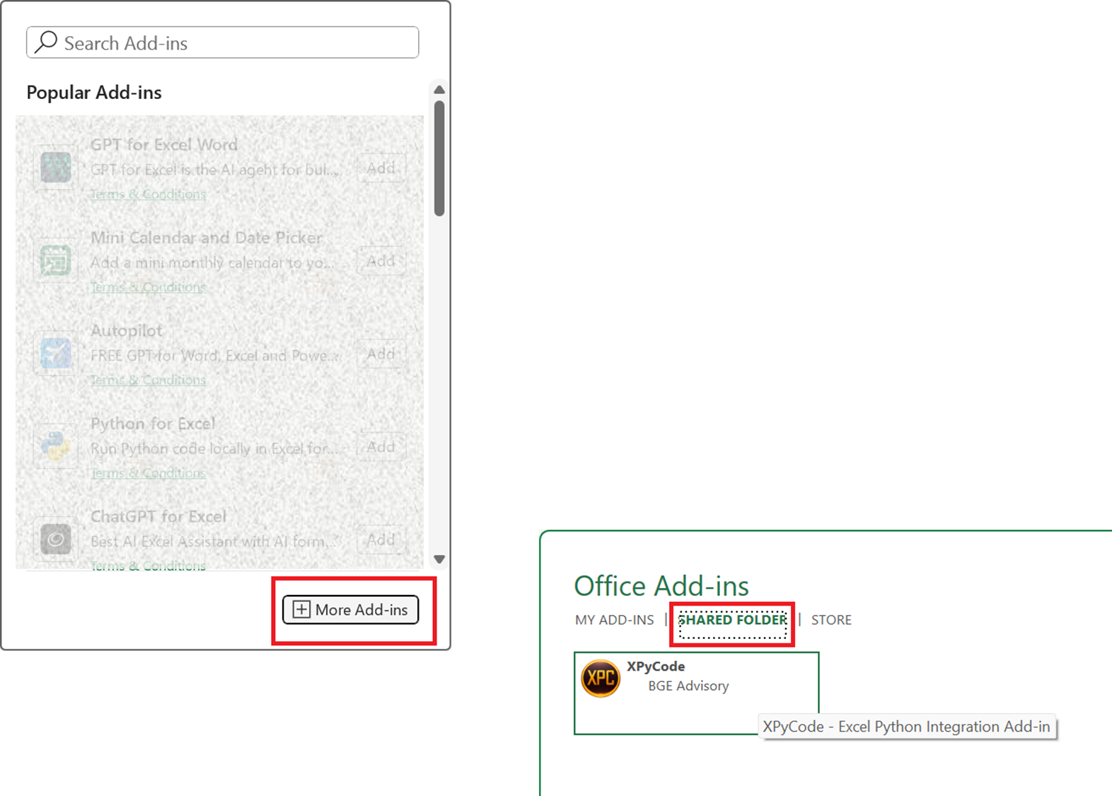 - Navigate to Home tab → Add-ins → More Add-ins