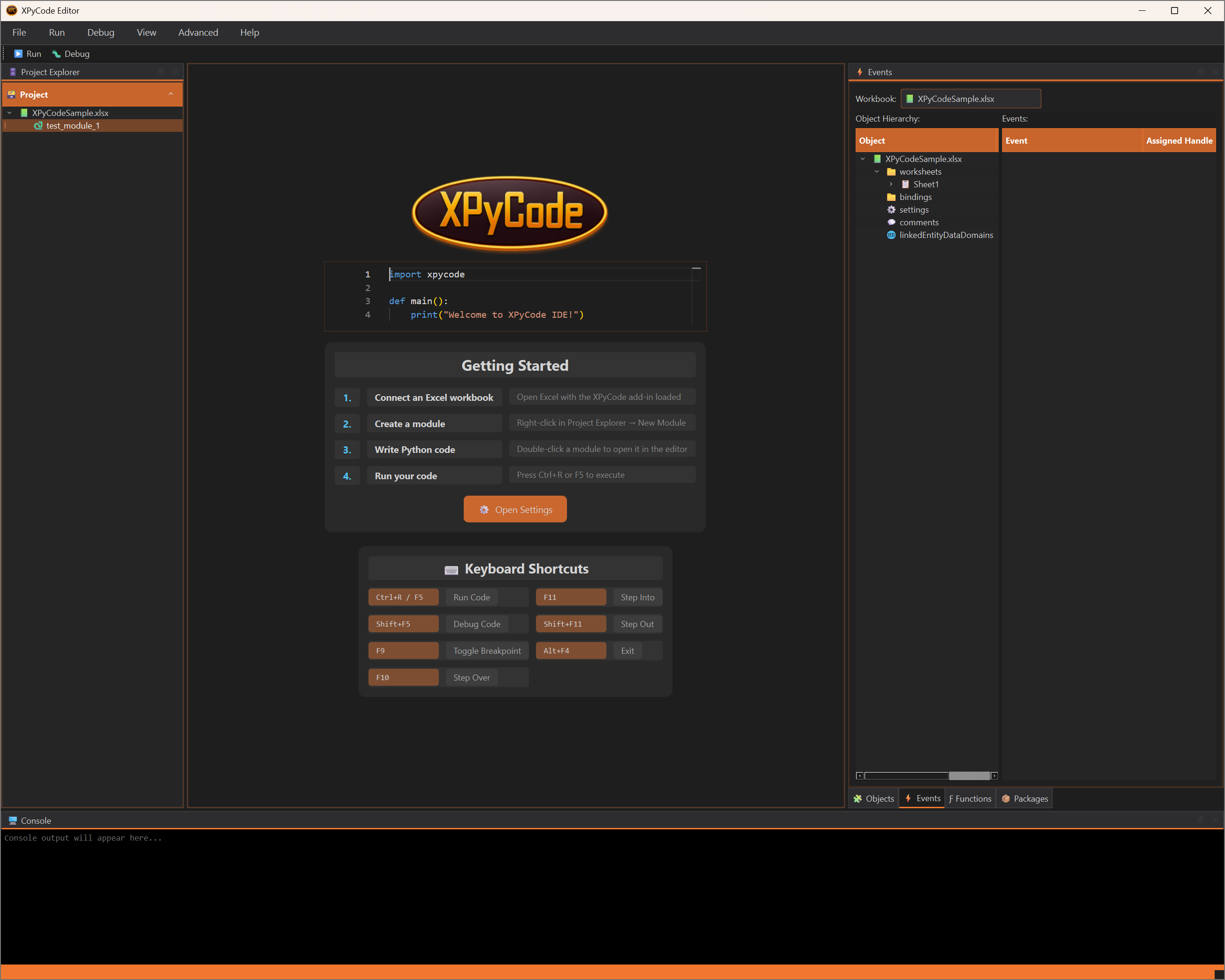 - Click Open Console to launch the XPyCode IDE