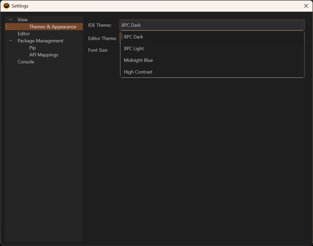 - XPC Dark (default) - Dark theme optimized for long coding sessions
